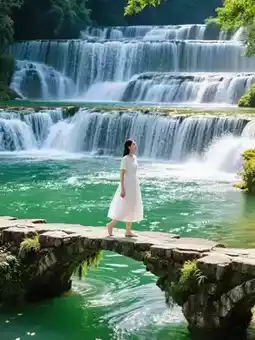 1️⃣ Libo Xiaoqikong: The green gem on Earth's belt! 68-level waterfall + Wolong Pool so blue it’s unreal. Wearing a white dress on the ancient bridge for photos gives you a “Little Jiuzhaigou” vibe!