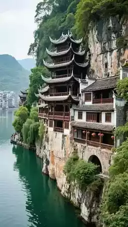 Qinglong Cave cliffside architecture: a thousand-year-old temple built on a cliff, breathtaking;