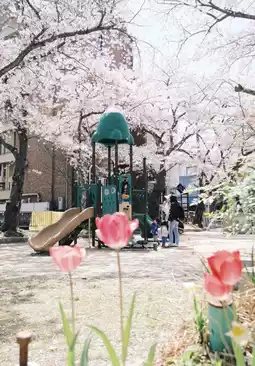 1️⃣ Kawaguchi Park: Swing under the cherry trees and see a beautiful clock.