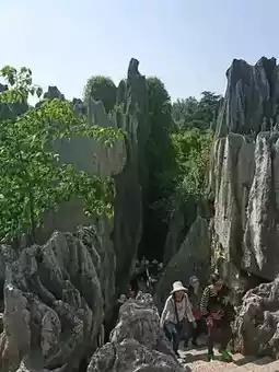 The Stone Forest Scenic Area can be roughly divided into three tour areas: the Large Stone Forest, the Small Stone Forest, and the Outer Stone Forest. The Large Stone Forest Scenic Area also features a Stone Forest Lake, where several stone peaks in the lake resemble maidens emerging from a bath, which is quite unique. In short, to appreciate the Stone Forest, one needs to unleash their wild imagination!