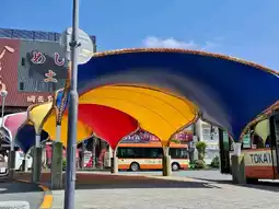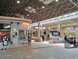 Once you step out of the station, you'll find a footbath, characteristic of a hot spring town. The water temperature is slightly lukewarm, making it suitable even for children. Buses departing from this station allow you to explore various parts of Shimoda, making it a perfect travel hub.