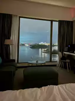 The terrace seating was particularly delightful. Sitting on white chairs, you can enjoy the view of ships departing while listening to the chirping of birds. It felt peaceful, as if you were part of nature, and it was incredibly relaxing.