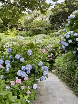 I particularly enjoy standing at the park's higher vantage points, where a vibrant sea of flowers stretches below, and the expansive blue of Shimoda Bay and the Pacific Ocean unfolds in the distance. The panoramic view is so captivating that it makes you lose track of time. The park also hosts a Hydrangea Festival, featuring flower viewing during the day and enchanting illuminations at night, adding to the romantic ambiance.