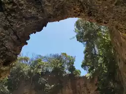 After enjoying the view from inside the cave, follow the route to the top and look down through the cave's skylight. You're sure to spot a large heart-shaped ❤️. Look further out toward the sea for a beautiful view.