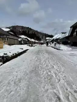 About 5 minutes past the torii gate that stands in the center of Ouchi-juku