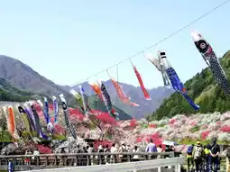 Tsukigami Onsenkyo, commonly known as the "flowering peach village," blooms from mid-April to early May.