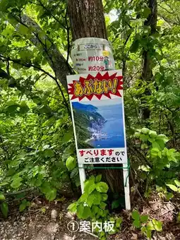 The parking lot is located at an elevation of about 100m, and it takes about 20 minutes down the mountain path to reach Hotokegaura.