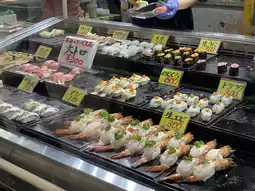 Don't miss the conveyor belt sushi restaurant "Sushi Yukkan" right next to the market! Known for its fresh ingredients and great value, it's a favorite among locals. It's the perfect spot for lunch after soaking in the vibrant atmosphere of Karato Market!