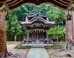 Akama Shrine is a historic shrine exuding a timeless charm, with its wooden structures gaining an even more rustic appeal through the passage of time.