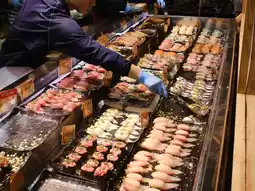 Choose your own sushi, plate it yourself, and enjoy it by the bay, enjoying the cool breeze.