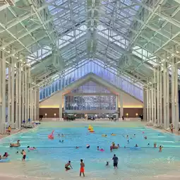 Additionally, the indoor beach Minamina Beach, featuring a massive wave pool, allows guests to enjoy water activities regardless of the weather. The Glass Water Chapel, designed by Tadao Ando, offers a serene space showcasing his architectural aesthetics.