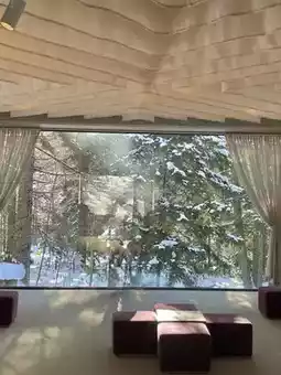 • The snowy landscape is visible from my room, and I still vividly remember lying in bed, gazing out the window,