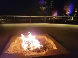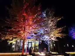 At night, the area is illuminated, creating a magical and enchanting atmosphere.