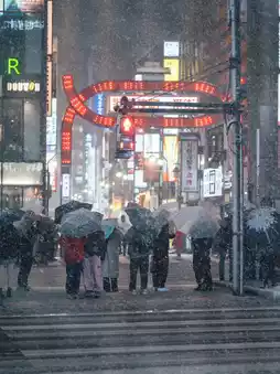 Snowing Shinjuku looks completely different from the usual hustle and bustle. The neon lights are blurred, and the city is wrapped in a white veil, like a scene from a movie!