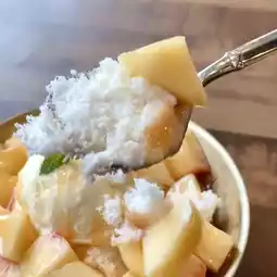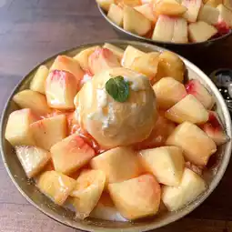 We ordered the peach-filled bingsu (Korean shaved ice), and it was a total treat! The shaved ice was light and fluffy, topped with a generous amount of fresh peaches and sweet condensed milk. It felt like a luxurious dessert, especially on a warm day.
