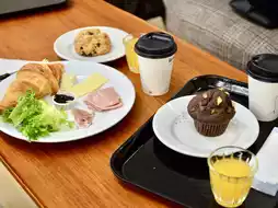I ordered a muffin and a glass of freshly squeezed orange juice, and everything was delicious. The chocolate muffin was soft, flavorful, and the perfect pairing with the tangy juice. It’s a simple breakfast, but it hit the spot!