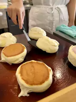 If you love soufflé pancakes, Howan in Ochiai is a must-visit! This cozy café is super popular, and reservations are a must. Their adorable, jiggly pancakes are the star of the menu, and I finally got to try them!