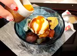 Excitement fills the air as the traditionally rich Kuroge Wagyu cooks to juicy perfection.