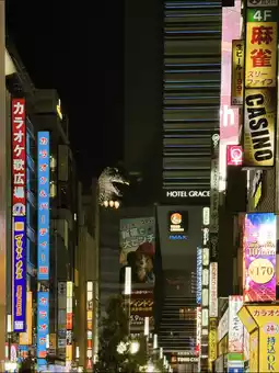 - Shinjuku Toho Building is the building where Godzilla’s head appears, a popular spot for tourists to take photos.