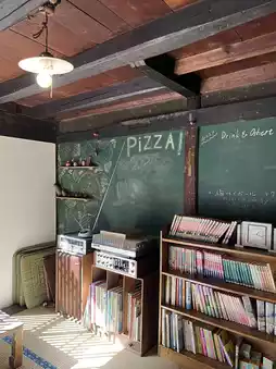 A used book cafe with a huge popularity for its handmade pizza baked in a stone oven ☕️ Of course the exterior is great too!! Personally, I really like the interior ♡ The first floor has used books and you can read as much as you want 😮´- The second floor is like an attic and is a very relaxing space 🌈ᵕ̈*