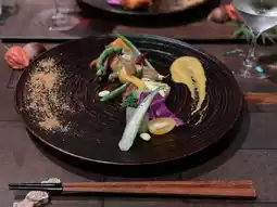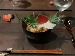 A seasonal course menu centered around local ingredients was served.