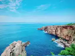 The first place I visited was the famous cliff 'Sandanbeki' on the Shirahama coast. The magnificent rock wall stretches about 2 kilometers towards the sea, and I was overwhelmed by its power. At the base of the rock wall, there is a 36-meter-deep cave formed by sea erosion, which can be explored by descending an elevator. I was impressed by the mystical space created by the power of nature.