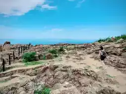 Next, I visited 'Senjojiki.' The waves have eroded the sandstone, creating a vast rock formation with the area of a thousand tatami mats. The unique terrain and the expansive view are truly spectacular, and the sunset over the Pacific Ocean is so beautiful that it has been selected as one of Japan's top 100 sunsets. I was captivated by the contrast of the sky and sea dyed by the sunset.