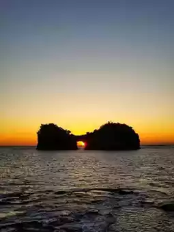 📍🌅The most striking feature of Yuanyue Island is that there is a natural arched cave in the center of the island. When the sun sets, the sunlight shines through the cave to form a beautiful scene, especially at sunset, the scenery is particularly spectacular. Therefore, Yuanyue Island is also an excellent place to watch the sunset, attracting many tourists and photography enthusiasts.