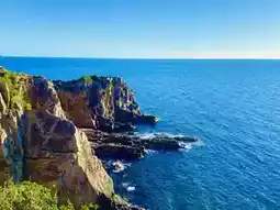 Admire the sapphire blue Pacific Ocean and the beautiful coastline weathered by the years.