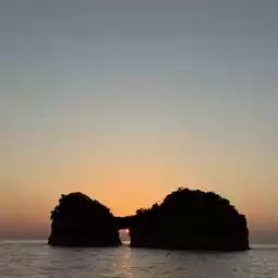 The fourth photo is "Engetsuto" where you can see the sun setting into a hole. (Depending on the day) Many people visit at sunset, so we recommend that you go and wait there an hour before sunset. (If you have a car, you will have trouble parking, so please be especially careful.)