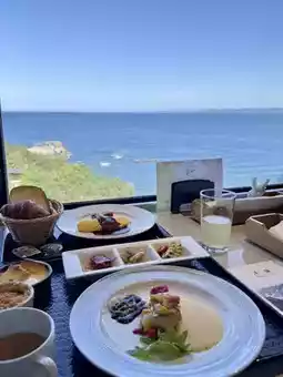East-Meets-West Design: Traditional Sukiya architecture blends with French floor-to-ceiling windows in a 180-degree ocean-view restaurant