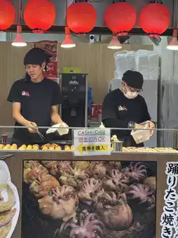 Instead of the usual chopped octopus bits, Odori Dako stuffs a whole baby octopus into each takoyaki ball. The result is crispy on the outside, gooey inside, and packed with that delicious, chewy octopus texture. It’s a fun and satisfying experience — both to see and to eat.