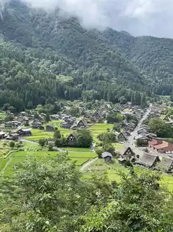If you walk from Shirakawa-go towards the mountain, there is a hilltop where you can see Shirakawa-go from the mountain, so if you visit there and take a photo, you can take a beautiful picture.