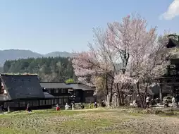 • Shrines, waterways, and fields spread throughout the village, and people still live there.