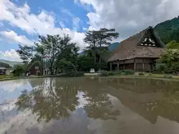 The morning in Takayama City started off gloomy, but as the bus headed towards Shirakawa-go, the skies cleared up with bright sunshine. Under the blue skies and white clouds, I embarked on a half-day tour of this fairytale village nestled in the mountains. The perfect weather, combined with the mirror-like reflections of the rice paddies, made the Gassho Village even more enchanting—like a backdrop straight out of a European fairytale!