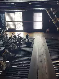In this UNESCO World Heritage site, only a few houses are open for public viewing. This time, I visited the Nagase family house. The Nagase house is a five-story structure, with the third and fourth floors showcasing traditional tools and artifacts from the past. The first floor serves as a living space, complete with a hearth, and is still actively used for daily life.