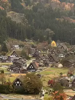 The bus ride itself was beautiful, with a stop for a quick break and views of autumn foliage 🍂. First stop: Takayama, a charming town with preserved streets, wooden houses, and a timeless atmosphere. Wandering here felt like stepping back in history.