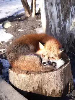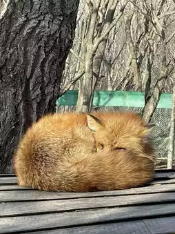 After walking a while, there are foxes here and there, curled up because it's cold, drinking water, etc. It was really cute to see them up close.