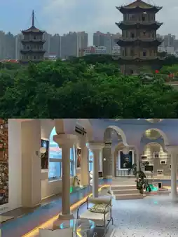 have a very large overall environment. The entire six-story building is a comprehensive creative space, and each floor has a different style. There are coffee homestays, art exhibitions, and a rooftop with invincible views. On the rooftop, you can see most of the ancient city of Quanzhou, including red brick ancient houses, the East and West Towers, and churches. Ladies who love to take pictures can come here, and every angle and corner is very photogenic.