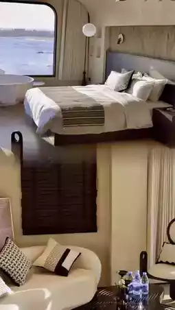 • White spiral staircase, sea swing, rainbow stairs, Moroccan-style courtyard, perfect for Instagram-style photos.