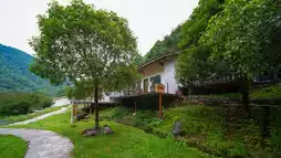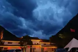 Inside the homestay: The courtyard of the homestay is relatively large, so you can always come out for a walk and breathe in the full negative oxygen ions; the suspension bridge spans the stream in the lower reaches of the Grand Canyon. It is very photogenic to stand on the suspension bridge on a cloudy day with the landscape as the background and the leaves as the foreground; it is also very beautiful to stand in the restaurant and take pictures of the white tents and blue sky peaks in the leisure area through the red lanterns. Of course, aerial photography looks good^_^; at night, you can also sing on the small stage in the bonfire area, singing very happily and having a great time 🎤