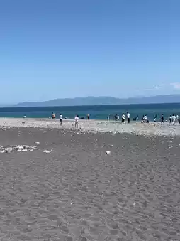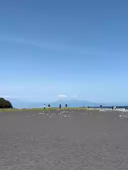 It's also one of the best places to see Mount Fuji from the shore. If you visit during a clear day, the view is stunning. Tourists here include both Japanese picnickers and children playing in the water, as well as international visitors. The water is crystal clear and gentle, making it perfect for swimming.