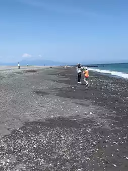 The highlight of this beach is the black sand beach, formed by lava fragments and volcanic rock from Mount Fuji, giving the sand a dark color unlike any other beach.