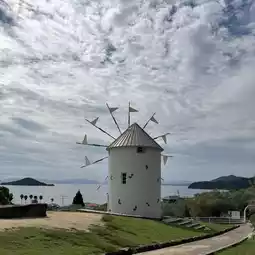 Shodoshima's Olive Park exudes a Mediterranean vibe, featuring expansive olive groves, herb gardens, and stunning views of the Seto Inland Sea. It's a healing and dreamy destination. Under the white Greek-style windmill, you can borrow a magical broomstick and take photos reminiscent of scenes from "Kiki's Delivery Service," making for a particularly joyful and carefree experience.