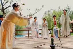 Sit by the window, watch willow catkins drift over tea sets, capturing the fleeting moment of "tea smoke swirling with falling petals."