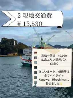 I've summarized the expenses for my trip to Kagawa and Hiroshima~🌟