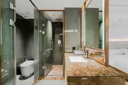 The hotel is built to three-star standards, with a spacious and bright lobby featuring warm yellow lighting and wooden decor that immediately puts you at ease. The front desk staff are very welcoming. We stayed in a business king room, which was spacious with soft bedding that instantly relieved the fatigue of exploring the ancient temple. The bathroom had a separate wet and dry area, complete toiletries, and even a high-power hairdryer, perfect for drying long hair.