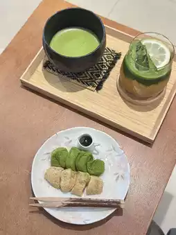 🎈 Yotsuba tea shop, green tea cafe, various menus, whether it's pure matcha, sparkling latte, everything is available. We ordered Ume soda, I like it, it's refreshing. There are quite a few dessert menus, such as warabi mochi, dango, cake, etc. in Japanese style. The shop is not very big, it's a renovated shophouse, clean, chill• 4/5 points The shop has good recommendations, delicious drinks and desserts• There is parking in front of the shop and on the opposite side