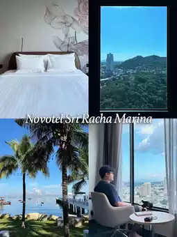 🎈 Novotel Marina Sriracha & Koh Sichang Hotel, good accommodation, big bed, comfortable sleep, complete facilities, the swimming pool is a bit small Sleep on the city view side, see the mountains, I like it. Deduct points for breakfast. There is not much food, the taste is normal. • 4.5/5 Deduct points for breakfast