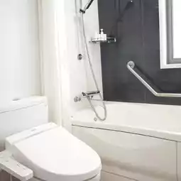 This hotel is located on the side of the road ❤️It is very convenient to travel because it is near the department store, convenience store, restaurant. It gives the atmosphere like we are really staying in Japan because everything in the room is decorated in a genuine Japanese style. Even the bathroom, bathtub, and toilet are Japanese style😀